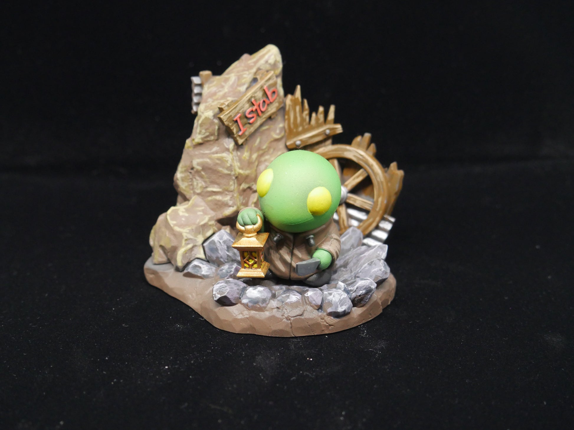 Bring the charm of Final Fantasy to your collection with this meticulously hand-painted Tonberry model! Standing at a compact size just shy of a typical mug, this 3D-printed resin figure captures the iconic look of the series' beloved green menace. From its lantern to its tiny knife, every detail is crafted with care to make it a perfect centerpiece or gift for any fan. Don’t miss the chance to own this unique piece of gaming artistry!